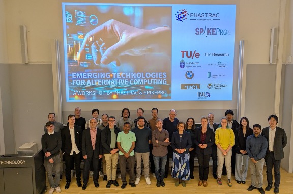 A joint workshop between the EU projects PHASTRAC and SPIKEPro, both dedicated to advancing on emerging technologies for alternative computing, including neuromorphic and physical computing, took place on June 5th at TU Eindhoven. The event brought together both consortia for lively discussions around devices, circuit design, technology choice and scalability. Advancing the frontiers for energy efficient computing requires innovation across the entire hardware stack and these two projects are working towards that goal while also training the next generation of young engineers and scientists.